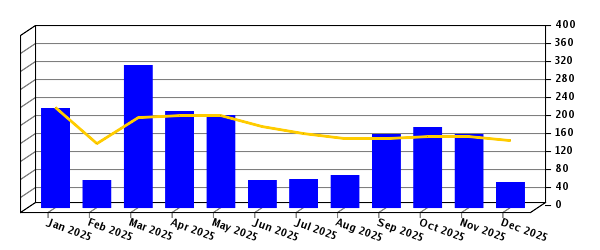 The Yearly Traffic Summary report shows an overview of the current years traffic stats as compared to the previous years. These stats include the totals for page views and unique visitors.